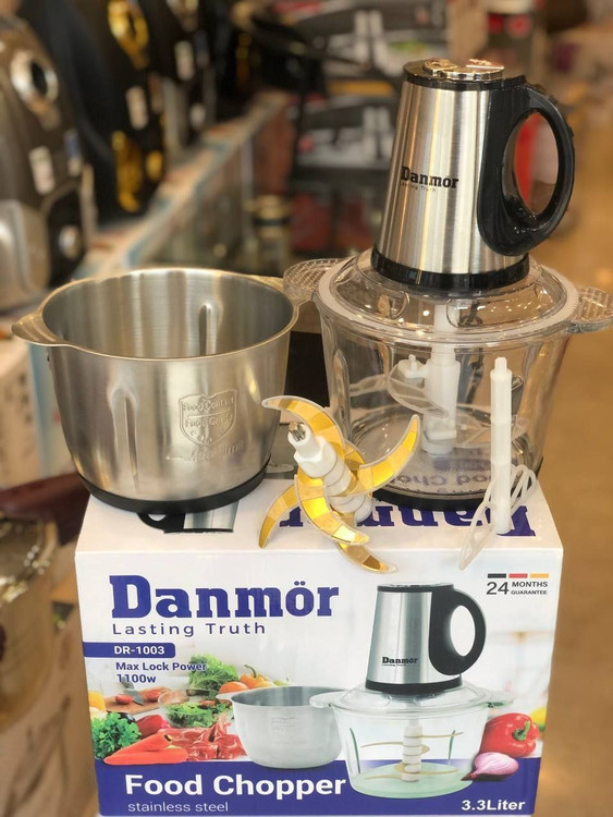 خرد کن دانمور دو کاسه مجزا (یکی از جنس شیشه و دیگری استیل) و دو نوع تیغه مختلف (چهار پره و شش پره) است. این خردکن دارای موتور پرقدرت با سیمپیچی مسی است و قابلیت تنظیم سرعت در سه حالت مختلف را دارد. همچنین، دارای محافظ برای جلوگیری از گرم شدن بیش از حد موتور و قابلیت جدا شدن قطعات برای شستشو است.